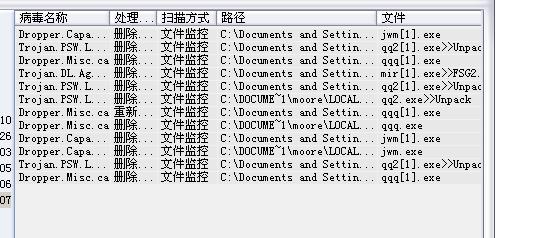 Dropper.Misc.ca    重新启动计算机后删除文件    文件监控    C:\Documents and Settings\moore\Local Settings\Temporary Internet Files\Content.IE5\GH0VITQ7    qqq[1].exe