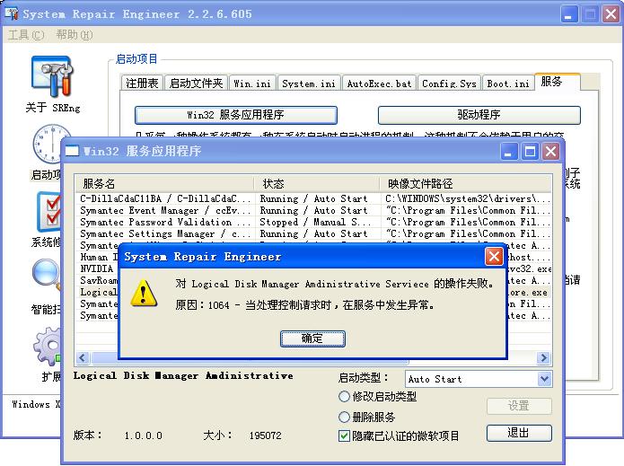 停止Logical Disk Manager Amdinistrative Serviece 时出现问题,弹出如图窗口