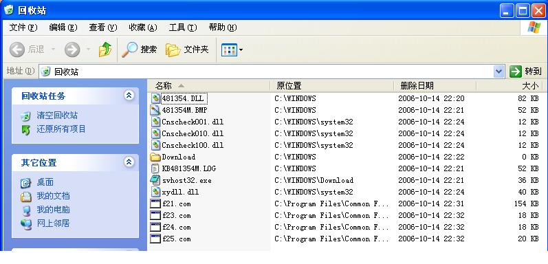 可能还会有其他的垃圾,这方面各人运行状况可能不同(因为它具有连网下载其他病毒文件的性质)。所以建议,找到一部分文件之后,按这些病毒文件的修改时间进行搜索,找到所有当天创建或修改的文件,其中与已知病毒文件创建时间相同的文件应同为病毒文件。