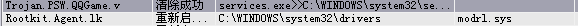 2.AND..每次用开机瑞星杀毒都能在services.exe>>C:\WINDOWS\system32\services.exe;里杀出Trojan.PSW.QQGame.v...和在 C:\WINDOWS\system32\drivers\modrl.sys发现Rootkit.Agent.lk 他说重新启动后删除文件但是仍然有。如何解决....