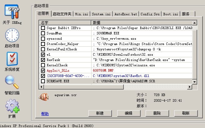 所有的启动项目(包括注册表、启动文件夹、服务等)