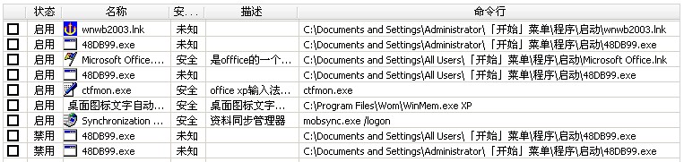 特    征:该EXE文件莫名出现在启动项内,用卡卡安全助手、奇虎360、优化大师修改启动项都无法彻底删除。用瑞星杀毒也未杀出病毒。