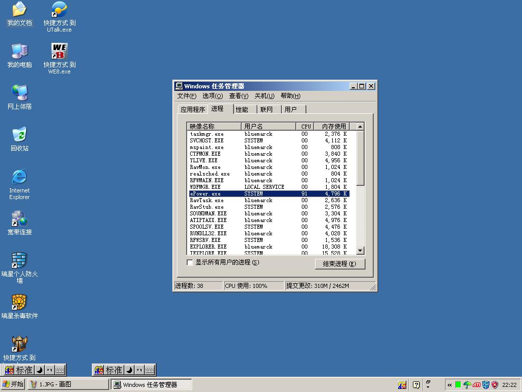 接下来我注意到电脑速度很慢,硬盘等狂闪,打开管理器一看,一个名为epower.exe的进程