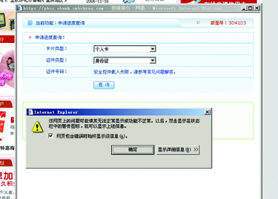 弹出个对话框"该网页上的问题可能使其无法正常显示或功能不正常.以后,双击显示在状态栏中的警告图标,就可以显示上述信息."好象是浏览器的问题.图片传了两次,都没成功..