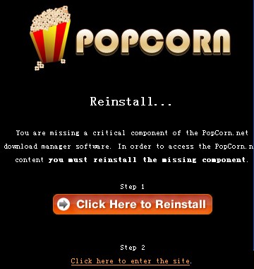 症状如下:开机半小时到四十分钟,屏幕自动弹出“popcorn.net ”“3daytrial explred ”字样的桌面,且伴有音乐,速度立刻变慢,无法退出、关闭。虽动用以瑞星为首的各路人马,亦未能清除。