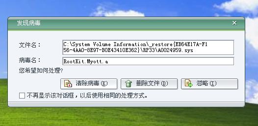 Rootkit.Myott.a 病毒,瑞星杀除之后重杀还是会有的,请问怎么处理呢?