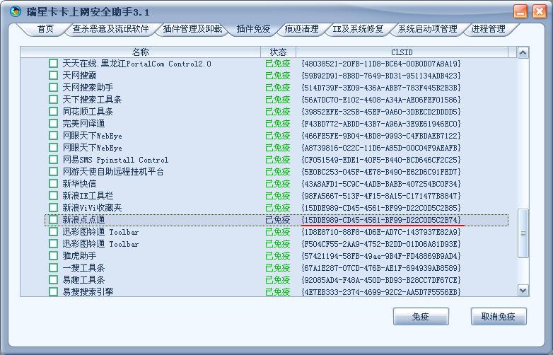 我明明已经对点点通设置成免疫了,IE里面也没有发现点点通,而且用兔子也扫不到,我就纳闷了……