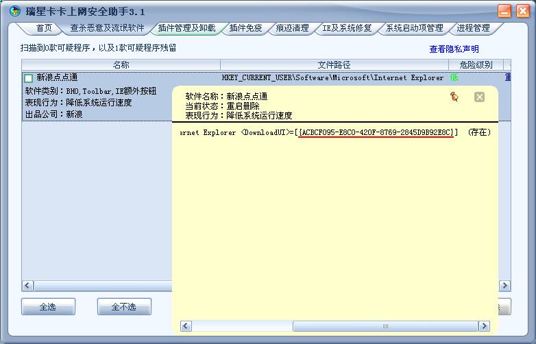 本人最近一扫描流氓软件就扫描到新浪点点通,而且貌似还"清不掉",清了以后还会出现