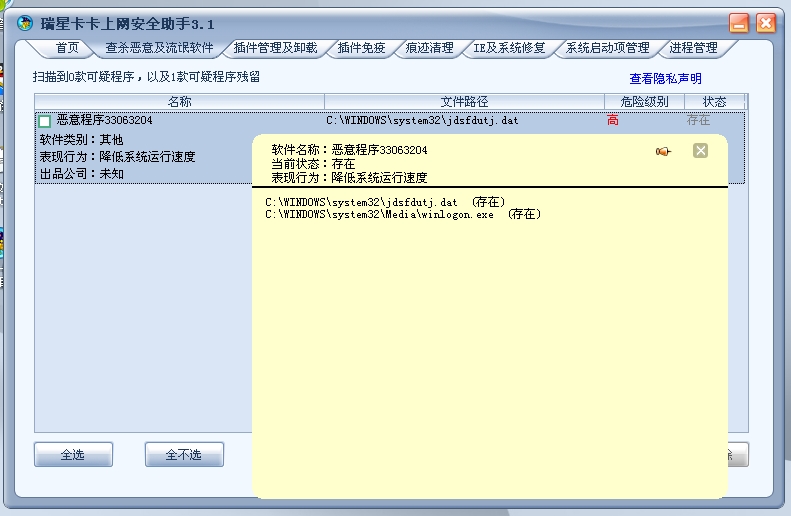 首先是在windows目录下植入了Logo1_.exe这个文件,然后在相同目录下释放出rundl132.exe,它可以感染你所有可执行文件,你双击被感染后的文件又会中招。这个病毒诺顿是可以查杀的,但干得不彻底。