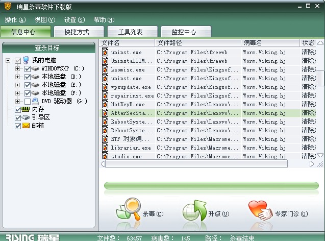 NND! 我中了熊猫烧香的病毒,重新装系统后,发现D盘、E盘、F盘、G盘全被感染,结果我找专杀,杀出了604个病毒,我心里那个哭笑不得啊!