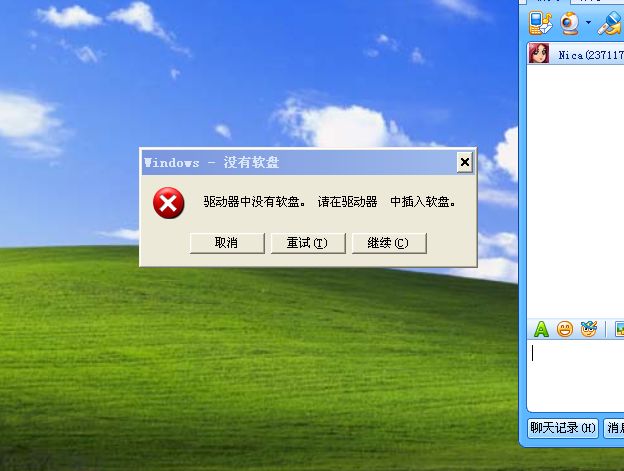 驱动中没有光盘.请在驱动器 中插入光盘
