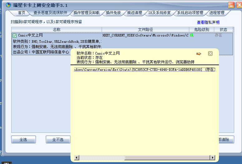 【求助】无法彻底删除CNNIC中文上网流氓插件!