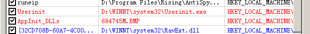 使用瑞星杀毒 每次在winnt根目录下找出684745M.BMP 病毒名Trojan.PSW.Misc.kiv 橙色八月也在各种模式下用过 没查到