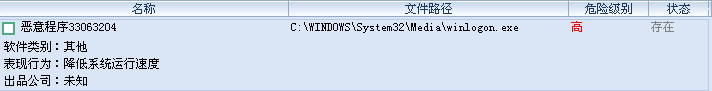 如图下:这个流氓软件是用卡卡安全组手查出来的,但是清除之后,重起电脑,仍然还在,后来上网查有帖子说是“落雪”,瑞星称为“橙色XX”,用瑞星专杀(橙色专杀)基本杀不出,应该不是"落雪",最后我上网寻找,得到Wopti 流氓软件清除大师,可以查出来,并杀掉,但是重起电脑,病毒还是存在!