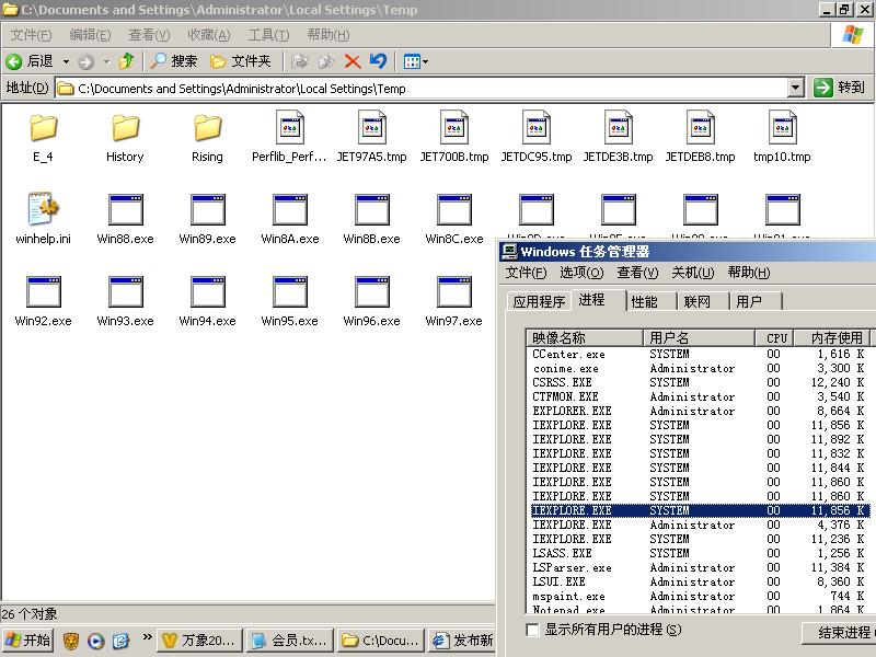 C:\Documents and Settings\Administrator\Local Settings\Temp 文件夹里出现winXX.exe的编号文件.