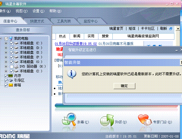 瑞星杀毒软件·单机版·【标准版】·2007版 刚买的啊,,还没到一星期呢,狂晕了
