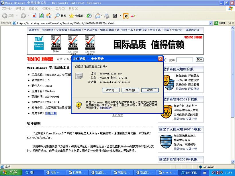 瑞星网站怎么了?Worm.Nimaya 专用清除工具,怎么下载下来无法使用?