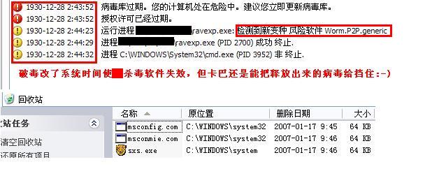 首先修改系统时间2007-01-17为2067-02-02 ,使一些杀毒软件失效,然后作案。