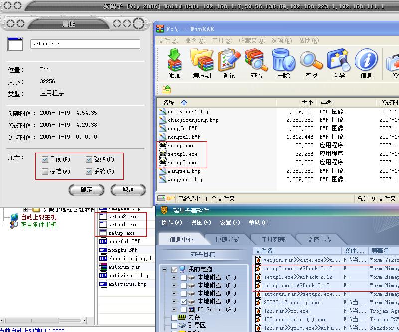 http://forum.ikaka.com/topic.asp?board=28&artid=8251325 此帖中写到 "只是用简单的方法解决瑞星无法完全清除这个病毒的小BUG" 瑞星(或者更多杀软)不杀系统属性和隐藏属性文件?? 等会下面有张图 看了就知道..