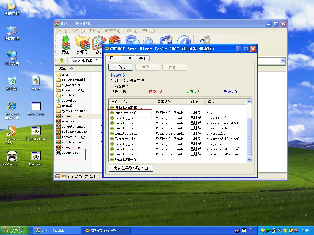2)这里看到的autorun.inf是引诱你双击盘符后运行setup.exe这个病毒文件的,不是有用的文件,不是正常的一个autorun.inf文件,没有用处,删掉比较好。autorun.inf 的文件作用是什么请问你懂么? baidu 或者 google 自己查..引诱? 你笑话开大了..