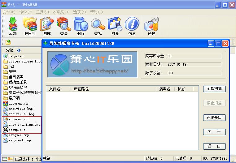 1、大家一定要把杀毒软件升级到最新的版本,我个人发现这个病毒并不感染瑞星杀毒软件,充其量只是把瑞星的进程小小的踢出内存或是不启动(表面上看)。http://forum.ikaka.com/topic.asp?board=28&artid=8251314
