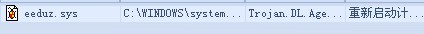 瑞星扫描初一个病毒,杀不了,提示重启,重启后还是老样子,安全模式也不行,求高手给看看这是什么病毒