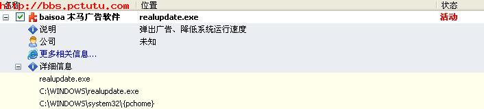 baiso广告木马实在可恶,无限弹出网页,严重占用系统资源,用其他反流氓软件扫描能够发现单无法清除,今日用卡卡助手绞杀,能够发现,单击清除后重启系统,流氓再次发威!!而卡卡助手却提示没有发现恶意流氓软件!我早已经将该病毒上报瑞星,可至今都无法彻底清除该流氓,实在不知该怎么办!