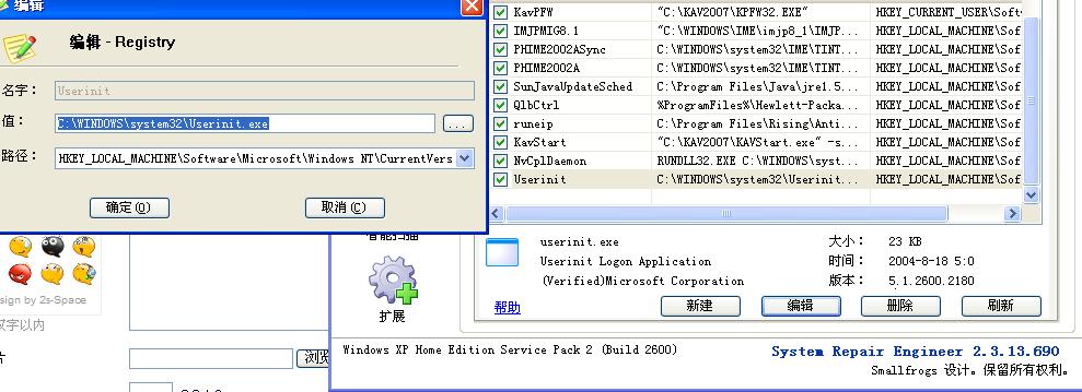 今天打开SRENG时提示存在一个非法修改值,连登陆QQ时都提示我使用软键盘,怀疑系统有后门程序,但是用瑞星没有查出来,后来又装个金山也没查出来,请问一下是不是UserList值被修改的原因?