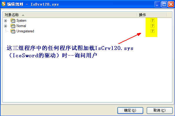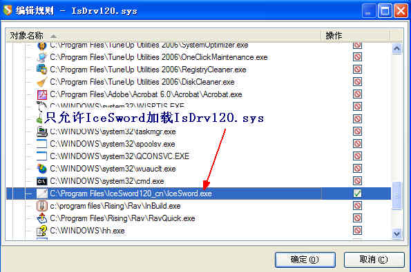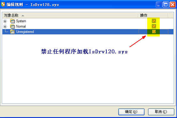2、作为给楼主的一个例子,4楼的那条规则是针对IsDrv120.sys这个驱动程序。