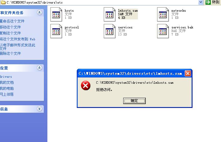 包括SYSTEM32/DRIVERS/ETC里的hosts文件,双击提示"拒绝访问"或者无任何反应!