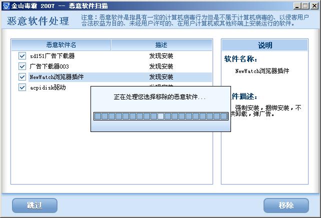 金山清除到这里就清除不下去了……