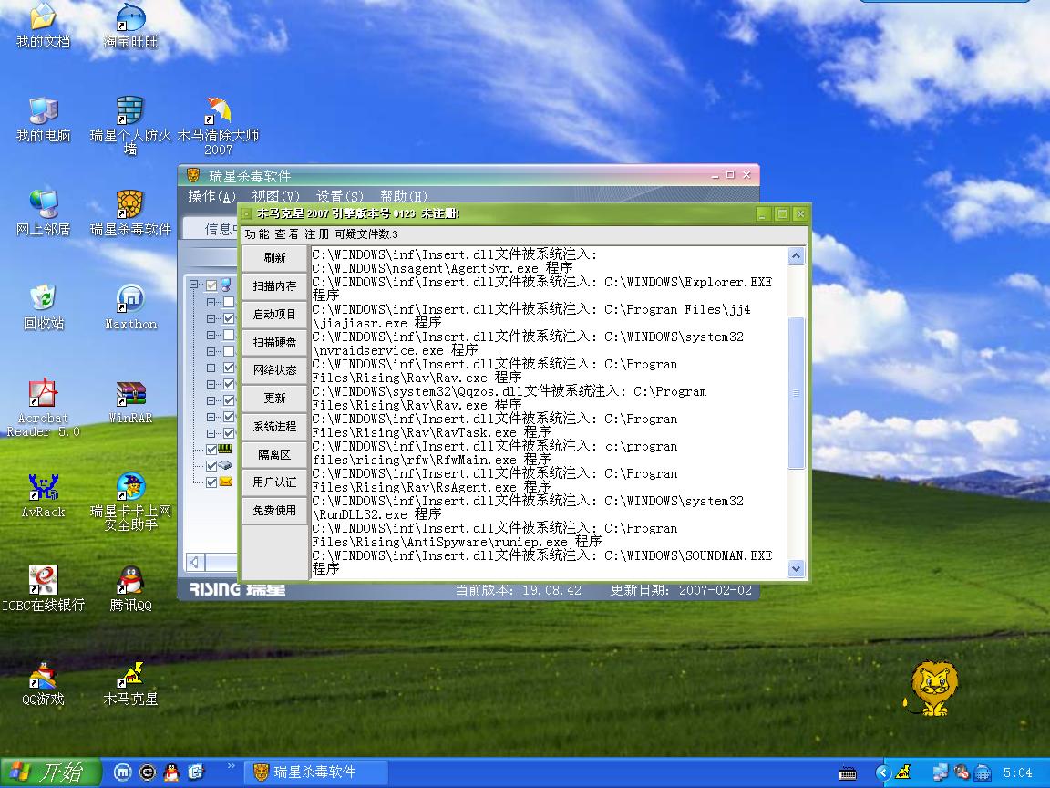 接二连三地中毒,被关闭了监控中心,回到安全模式居然也没查杀出病毒来!实际呢?看看人家木马克星的扫描结果吧!查杀不出病毒是能力低下,自身还老被攻击和破坏,脆弱不堪!