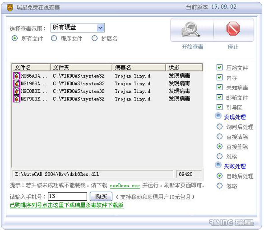 瑞星2009版查杀引擎测试