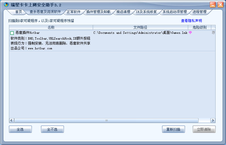 卡卡会把我在D盘建立的一个存放游戏快捷方式的文件夹的桌面快捷方式报成流氓软件,虽然无伤大局,但多少影响卡卡的精准度,现报上来,希望能修正.