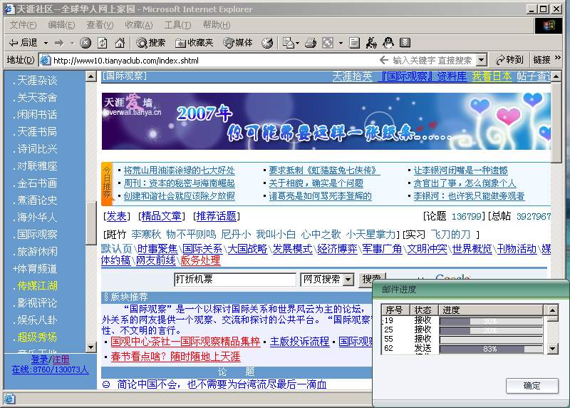 最近一上网系统就自动跳出这个“邮件进度”的框,然后就是拼命向我的电脑发送垃圾邮件,搞的我网络堵塞机器变慢,我用瑞星最最新升级版本也杀不掉它,55555555,我的机器要给他弄崩溃了,敢问各位大侠,我该如何是好啊!!!!