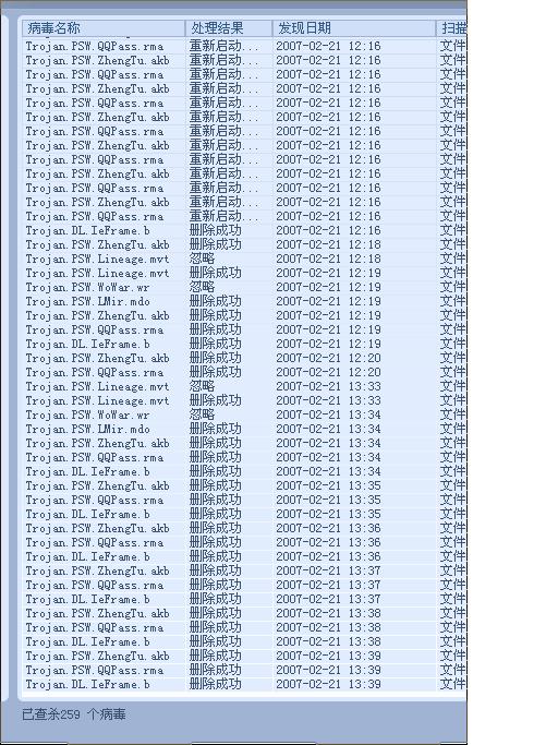 。。。晕。。。259个病毒。。。。杀不干净嘛