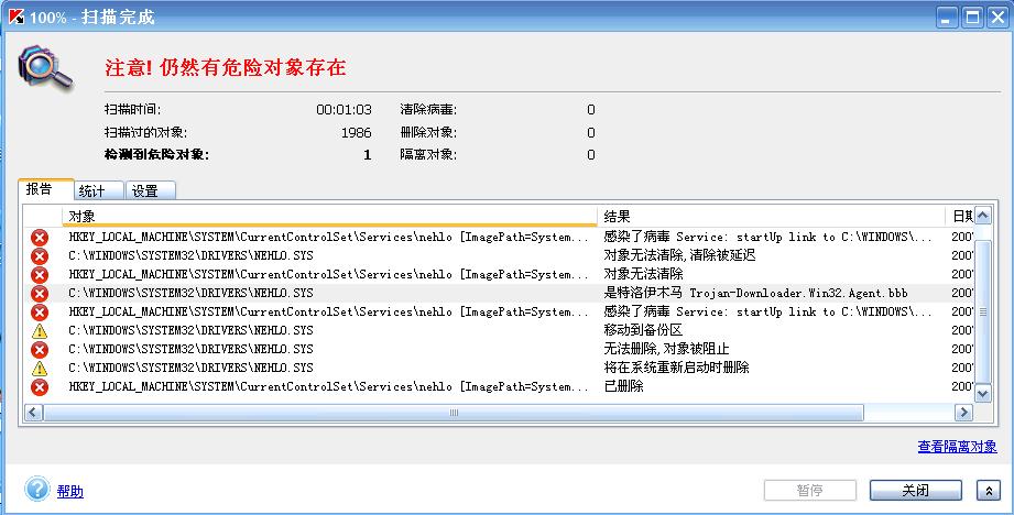 无法删除参照 猎魔族反病毒系列教程 里面的 如何删除顽固病毒