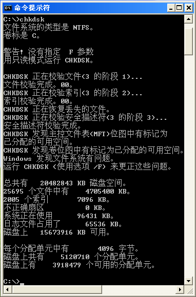 我的C盘到底怎么了?反复扫描磁盘, CHKDSK /F 反复提示 “CHKDSK”发现主控文件表(MFT)位图中有标记为已分配的可用空间。