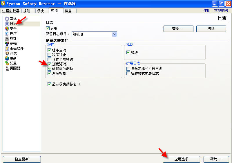 3、多数情况,SSM会提示.sys加载(注意看对话框内容)。如果你按下图设置了日志记录内容,在日志中应该也能看到相应内容。