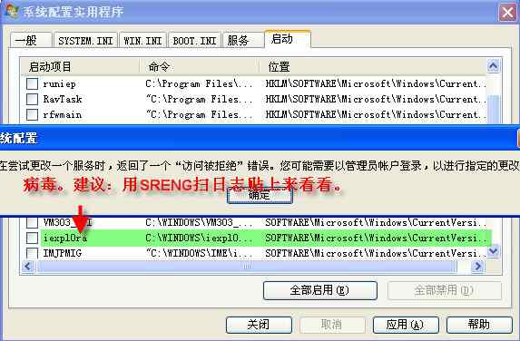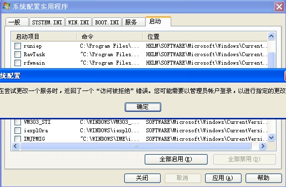 还有我的msconfig也不能更改了,我是管理员登陆的,不知道注册表哪里被修改了,居然不让我修改了.