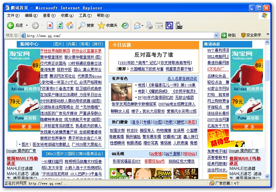 打开QQ的首页就见了淘宝网的广告,上其它网站就不会出现,怪了.