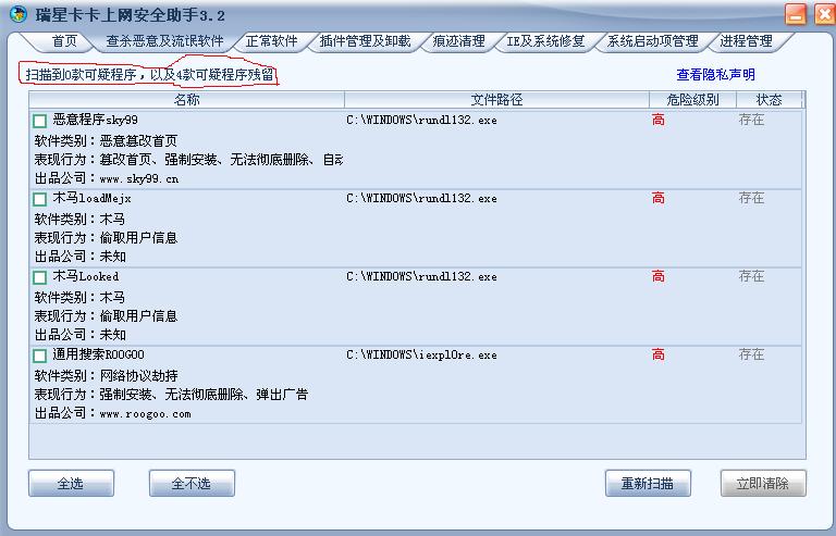 最新版本的瑞星杀毒连查都查不出来,卡卡只能查,杀不了
