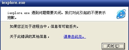 我刚刚打开网站(江城足球网)进入会员登陆的界面,输完密码和帐号后,点击永久保留,瑞星的卡卡上网助手给出了个提示筐(允许,和拒绝)我点了拒绝,结果我只要打开江诚足球网的网址IE就会自动关闭并且报错。我把卡卡卸载了还是这样。开其他的网业都正常.