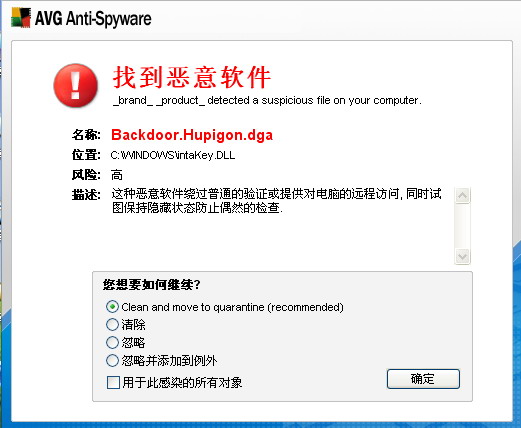 用AVG和卡巴都能发现,但杀不掉。安全模式也试了,系统还原也关了。