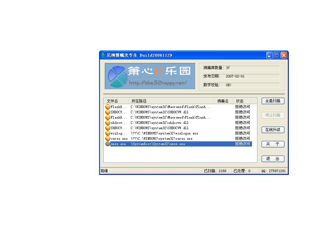 我用萧心熊猫专杀查杀了一遍  确实查杀和删除了一些病毒 但是有些却拒绝访问  以下是截图: