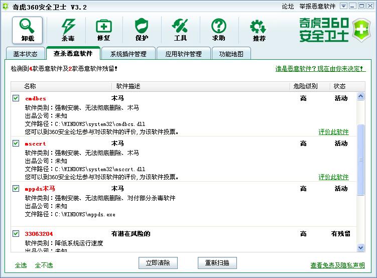 目前瑞星清理不干净,其他360safe也是只能发现,清理不干净