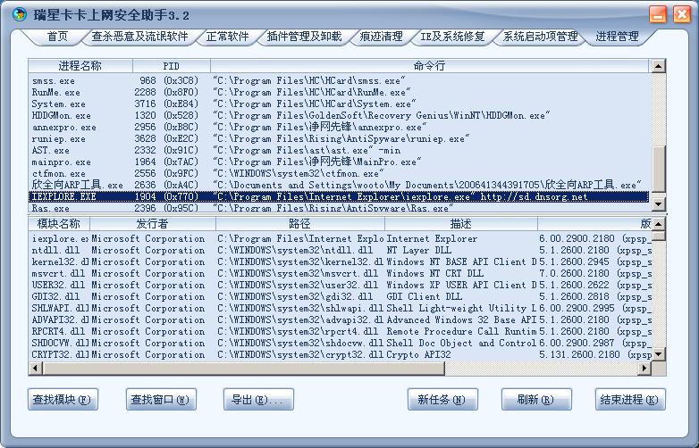 从网上下载了一个净网先锋自动登陆版的 安装后自动弹出两个广告网页 我截图了一个用卡卡助手扫描的进程 IEXPLORE.EXE 是不是 是不是病毒啊 如何杀除啊 谢谢
