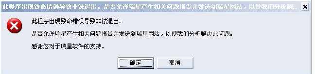 电脑弹出:此此程序出现致命错误导致非法退出,是否允许瑞星产生相关问题报告发送到瑞星网站,以便我们分析解决此问题.