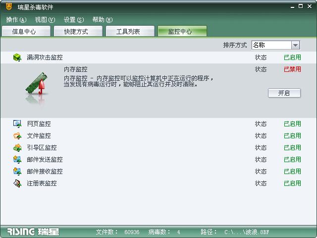 本人的瑞星為正版產品``前段時間由于系統问题就重新安装了系统和反病毒软件,可是在“监控中心”里的“内存监控”始终无法启用!就教应该如果解决该问题```谢谢``